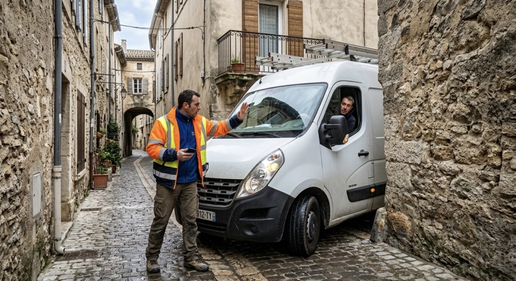 - La hauteur : Un fourgon de déménagement mesure souvent près de 3 mètres de haut. Oubliez immédiatement les parkings souterrains, les drive-in et faites extrêmement attention aux ponts bas, très fréquents sur les routes secondaires. Mémorisez la hauteur exacte de votre véhicule (généralement inscrite sur le tableau de bord).